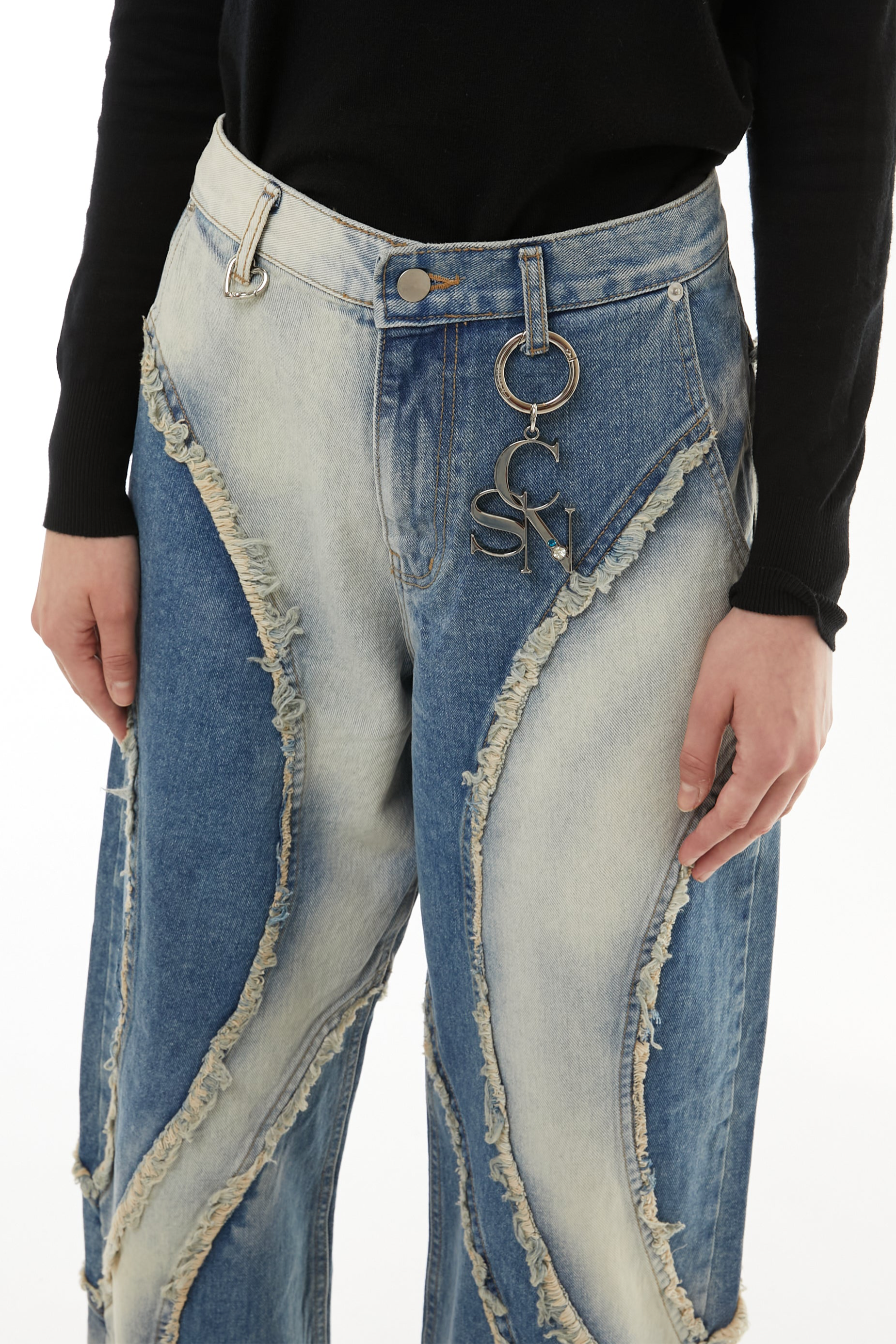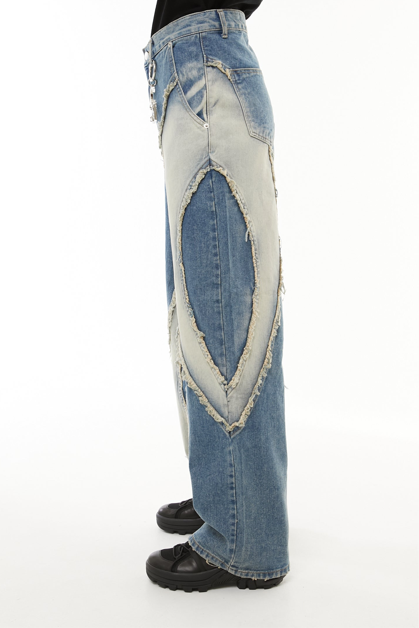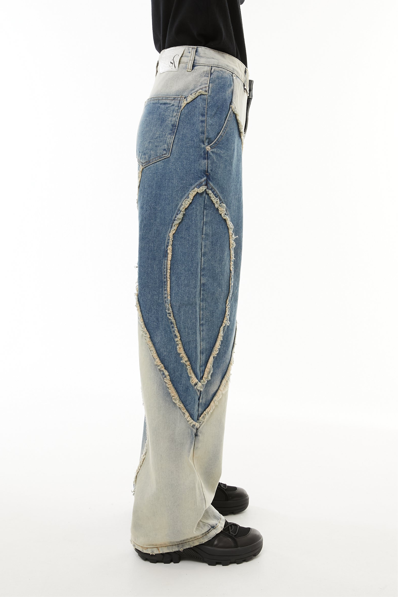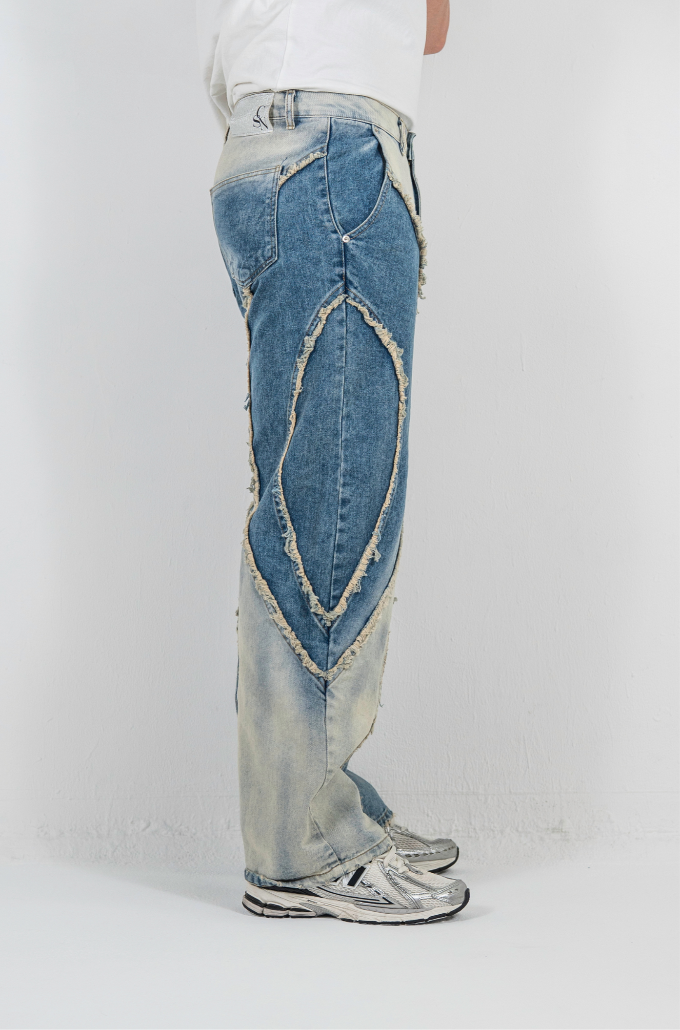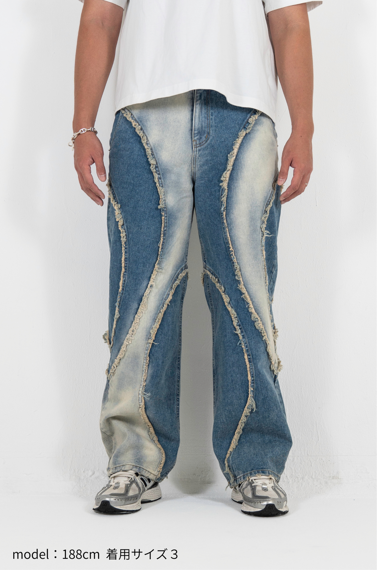 このデニムも、削り取られたパーツや不揃いな縁に、自分のかたちを探していたあの頃の記憶を重ねています。