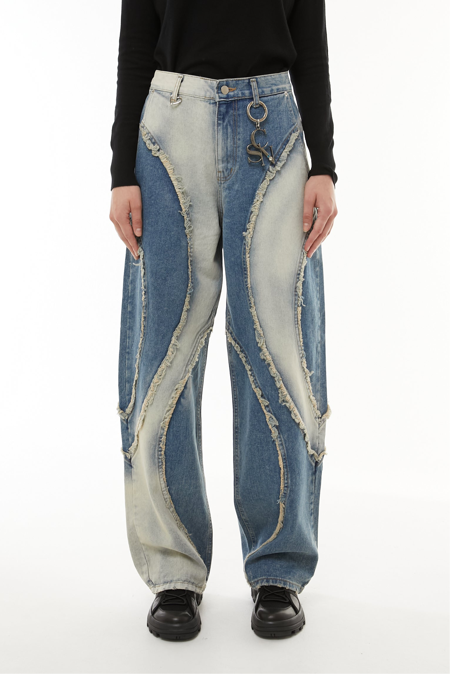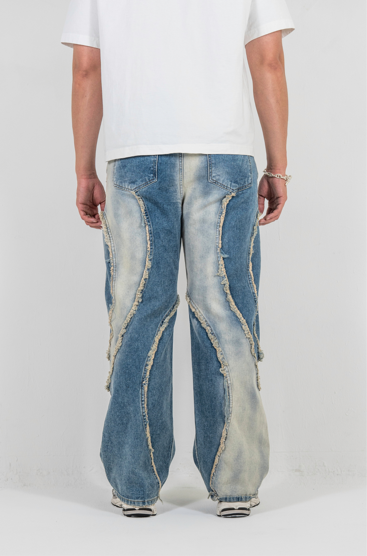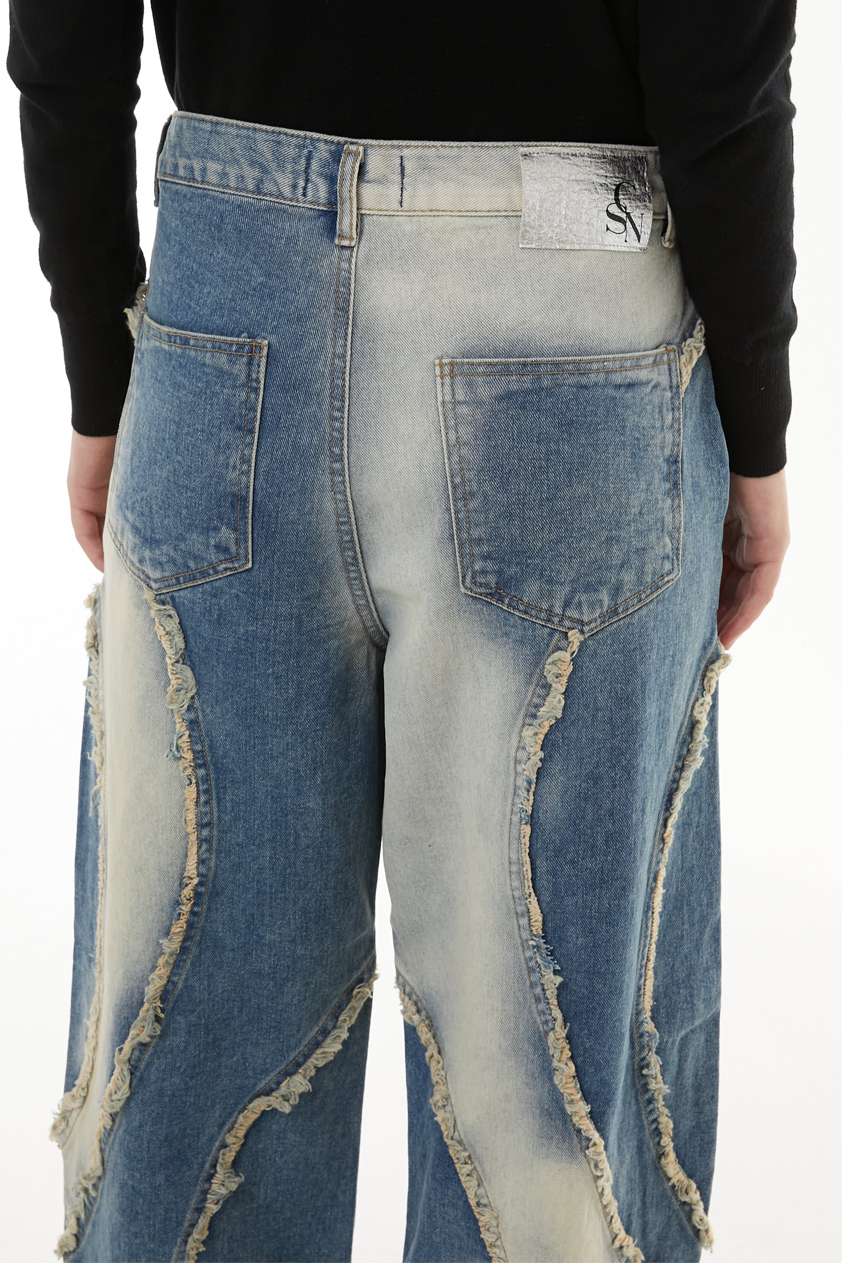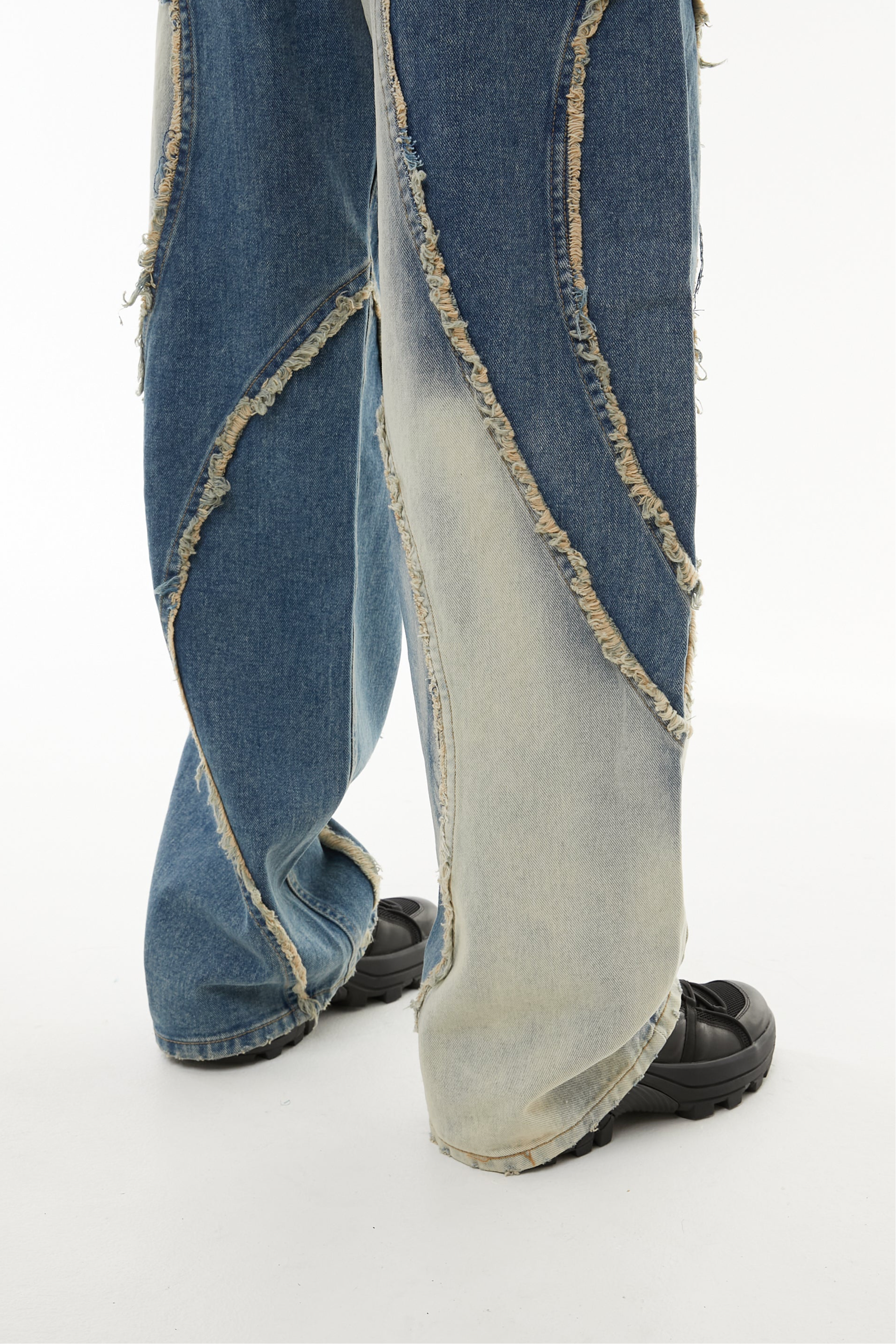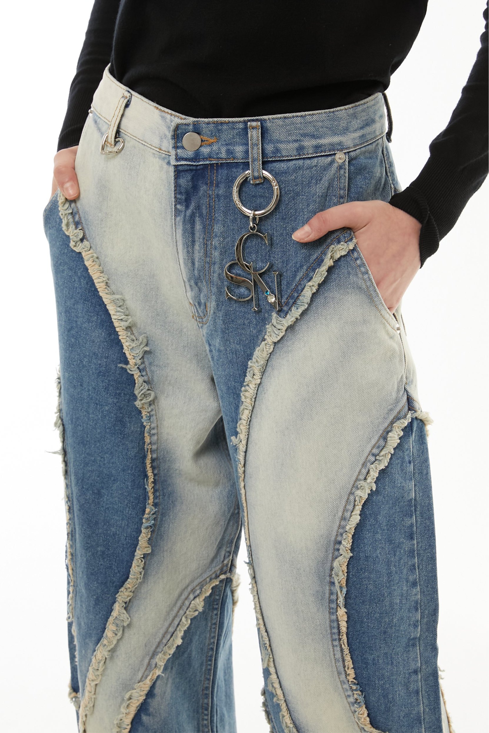 このデニムも、削り取られたパーツや不揃いな縁に、自分のかたちを探していたあの頃の記憶を重ねています。