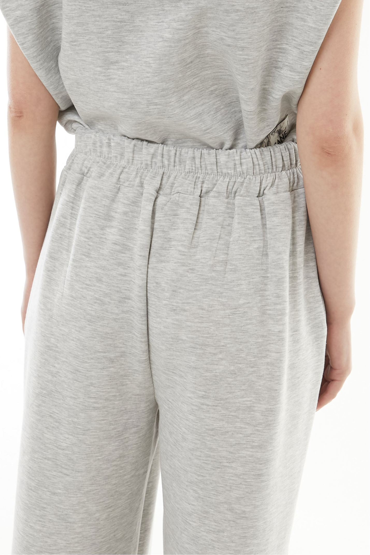 ・ショート丈トップスでウエスト位置が上がり、脚長バランスを自然に形成。
