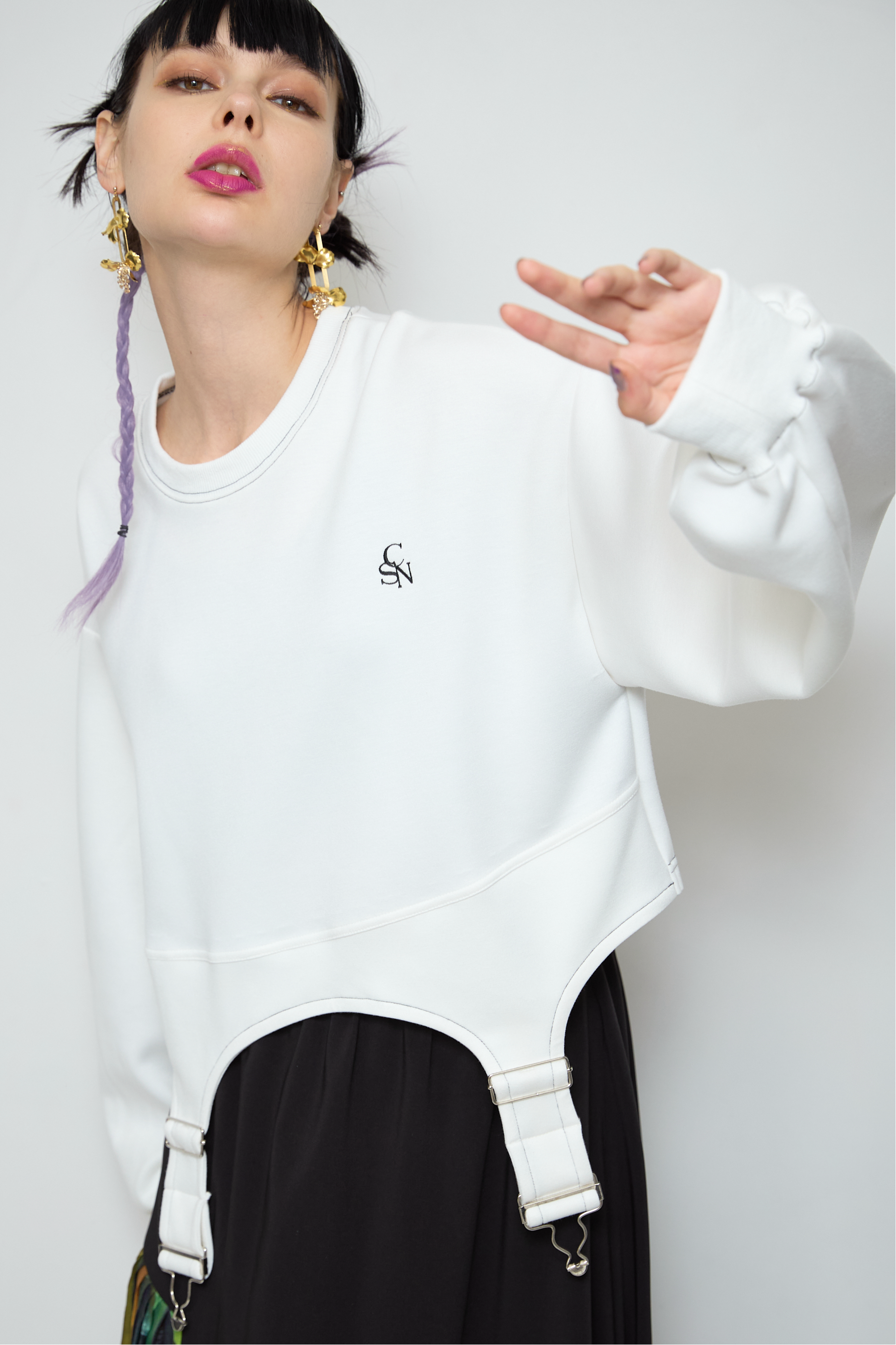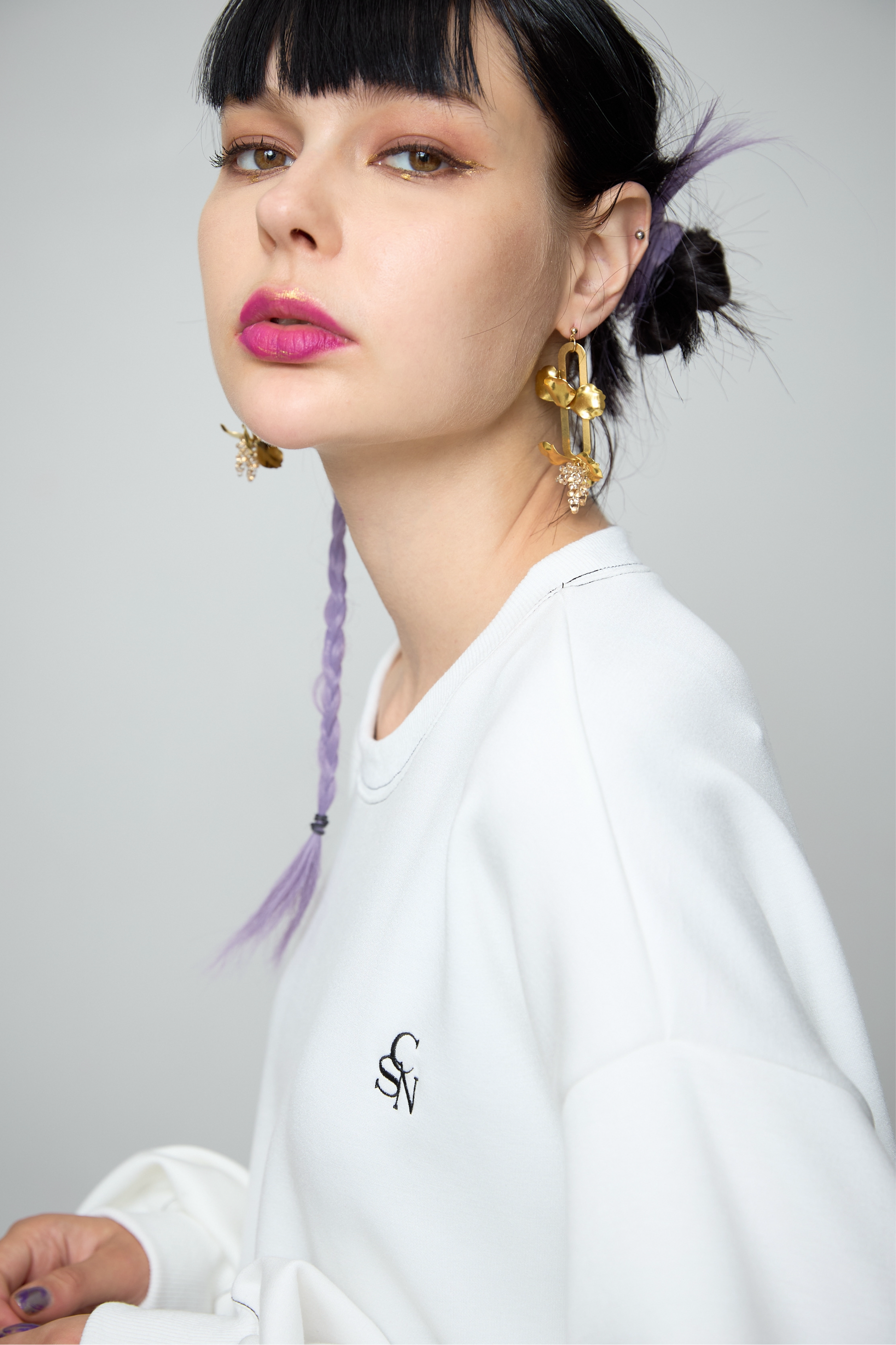 胸のポイントには口ゴ刺繍を施し、さりげない仕上がりに。