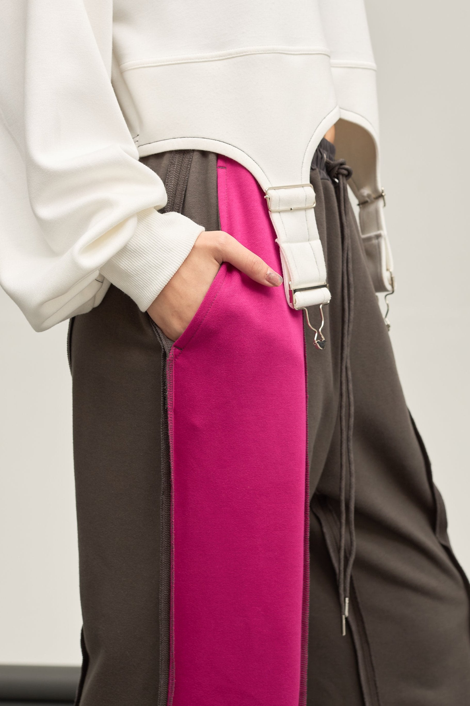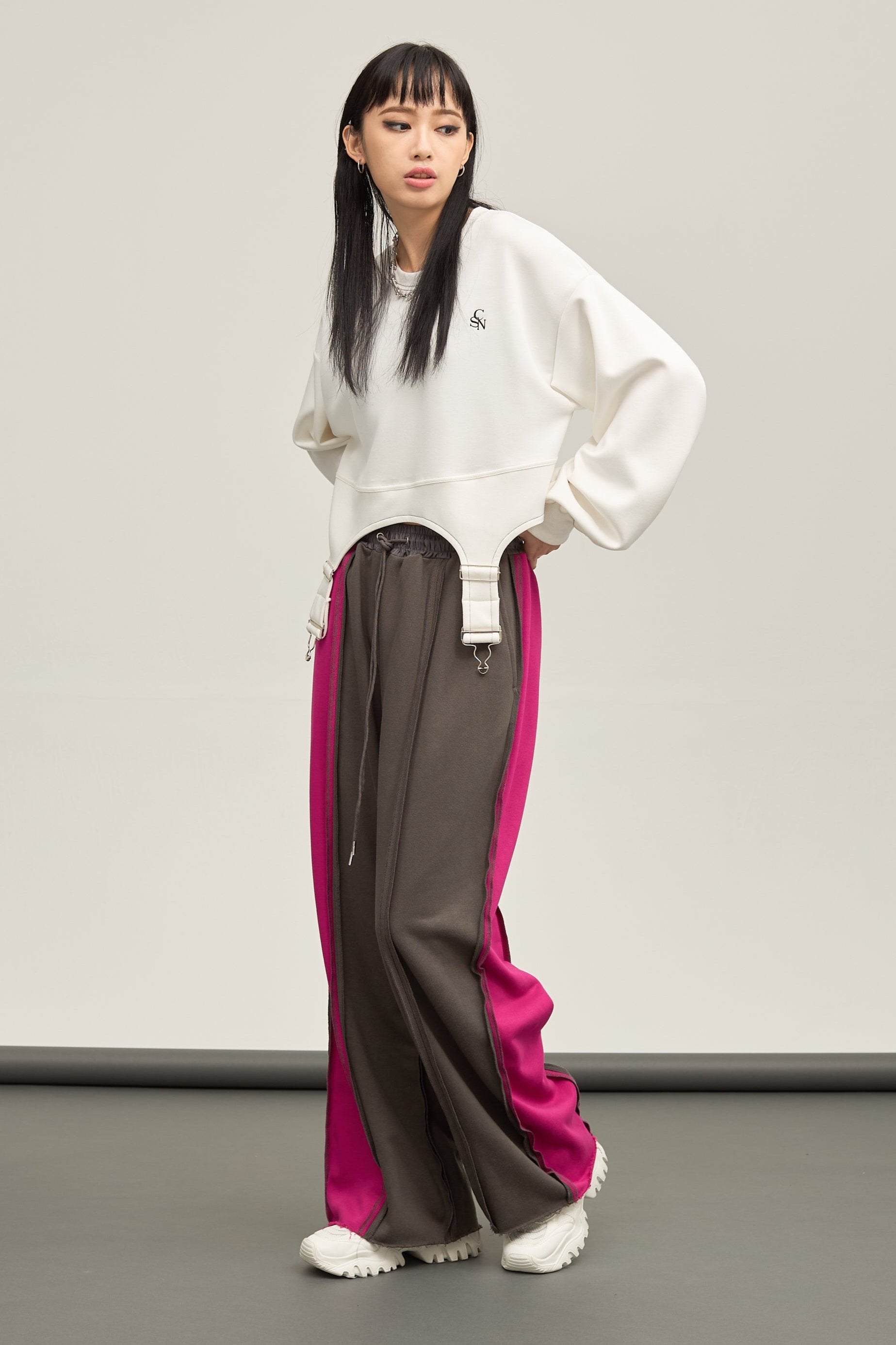 ウエストは異素材のベルトデザインにし、トップスインスタイルでもカジュアルすぎないデザインに仕上げました。