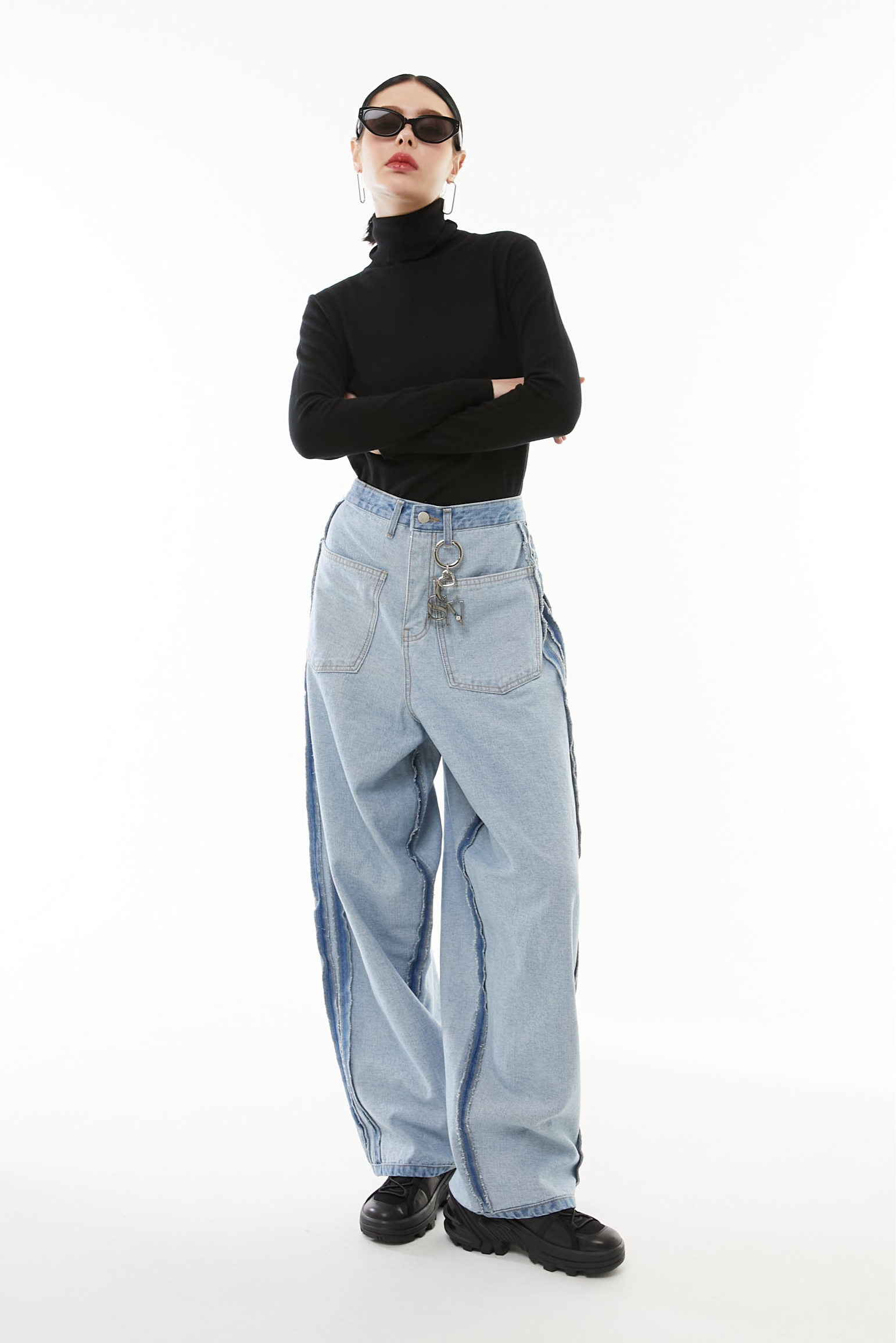 このデニムも、あえて裏側を表に出すことで、Y2Kのリアルと現代の解釈を繋ぐレイヤーとして存在している。
