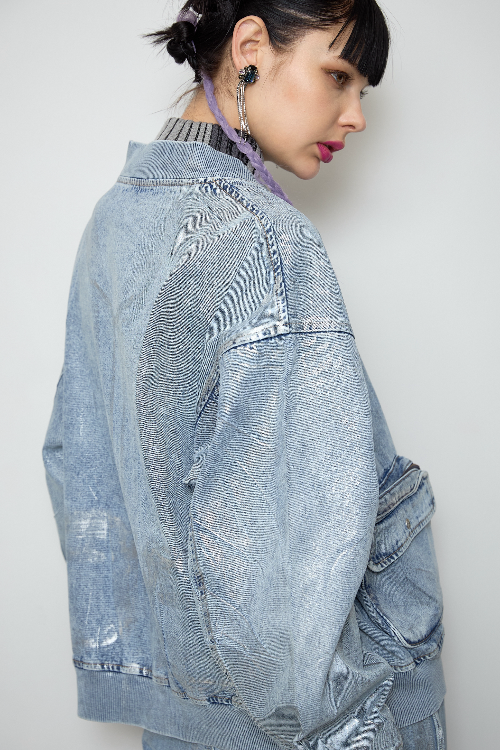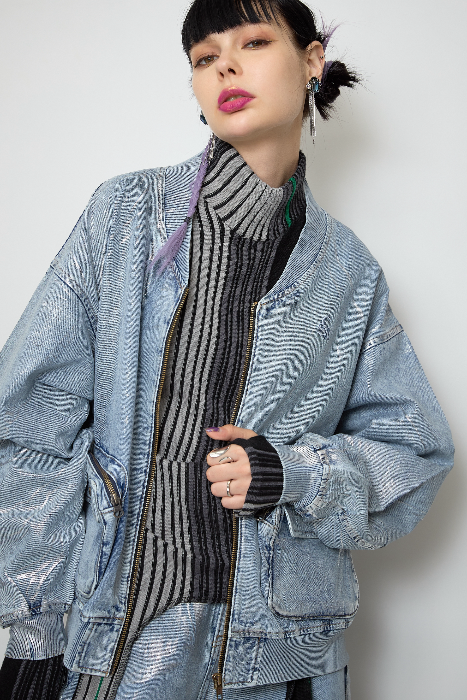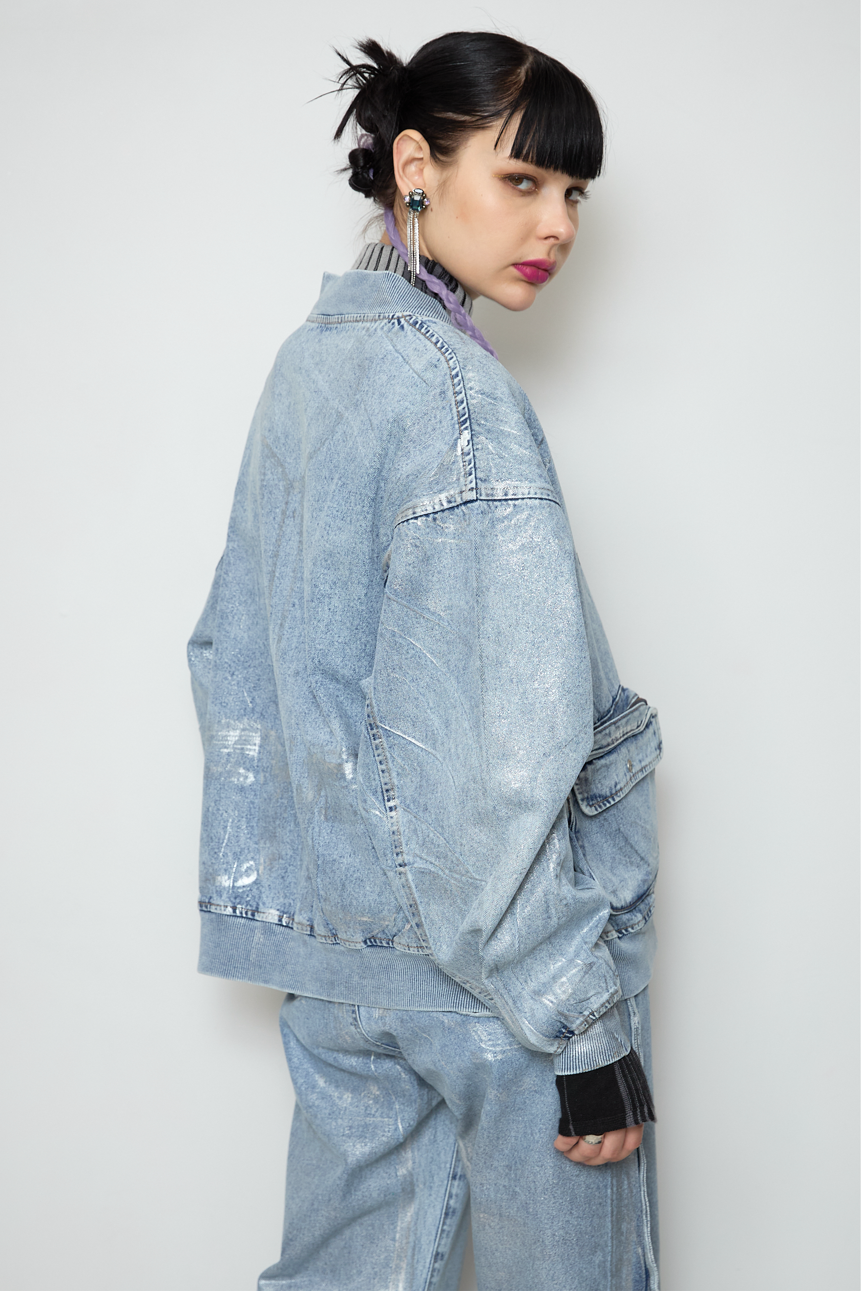 ゆったりとしたシルエットに、大胆に箔プリントを施したブルゾンです。