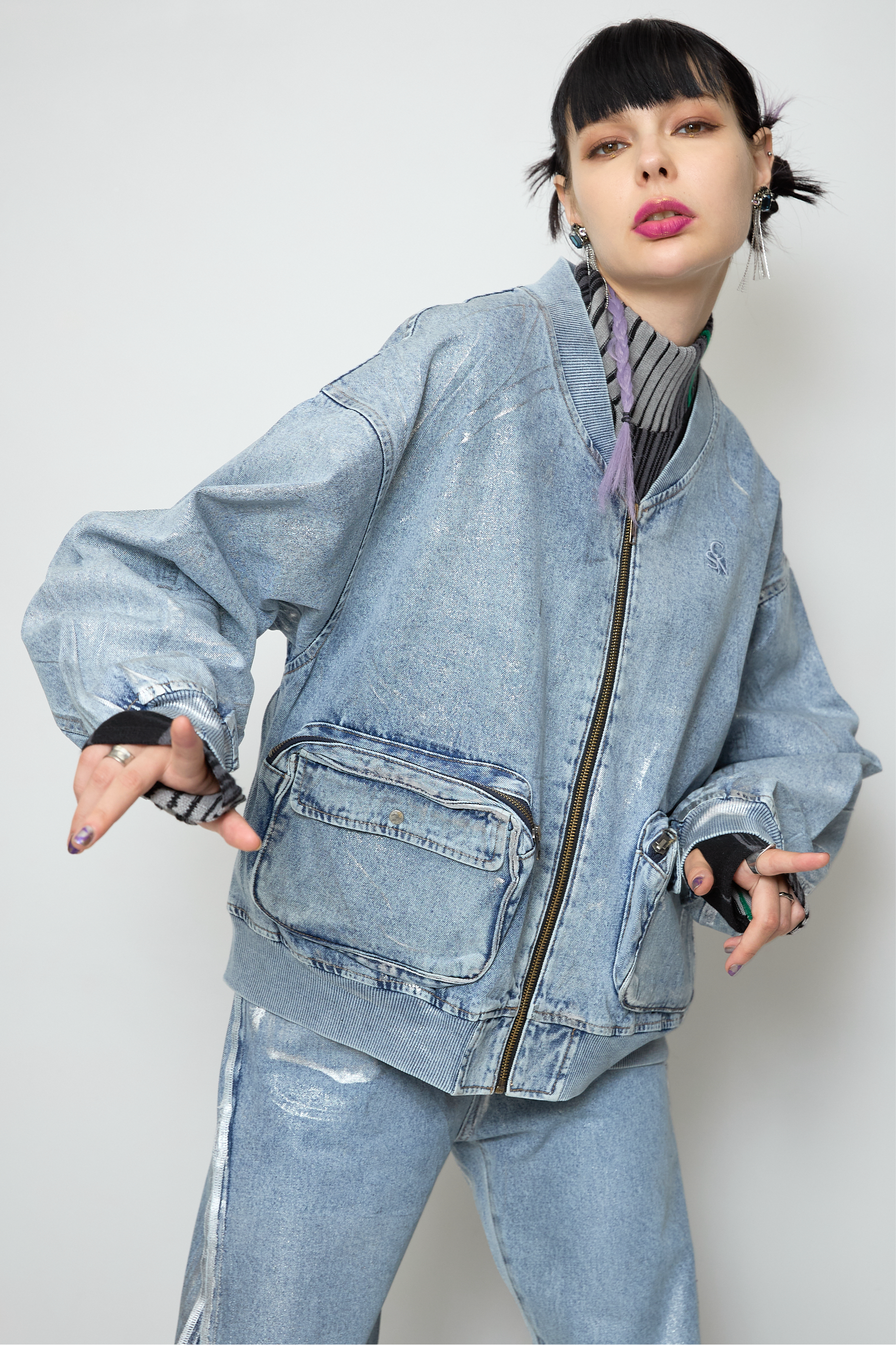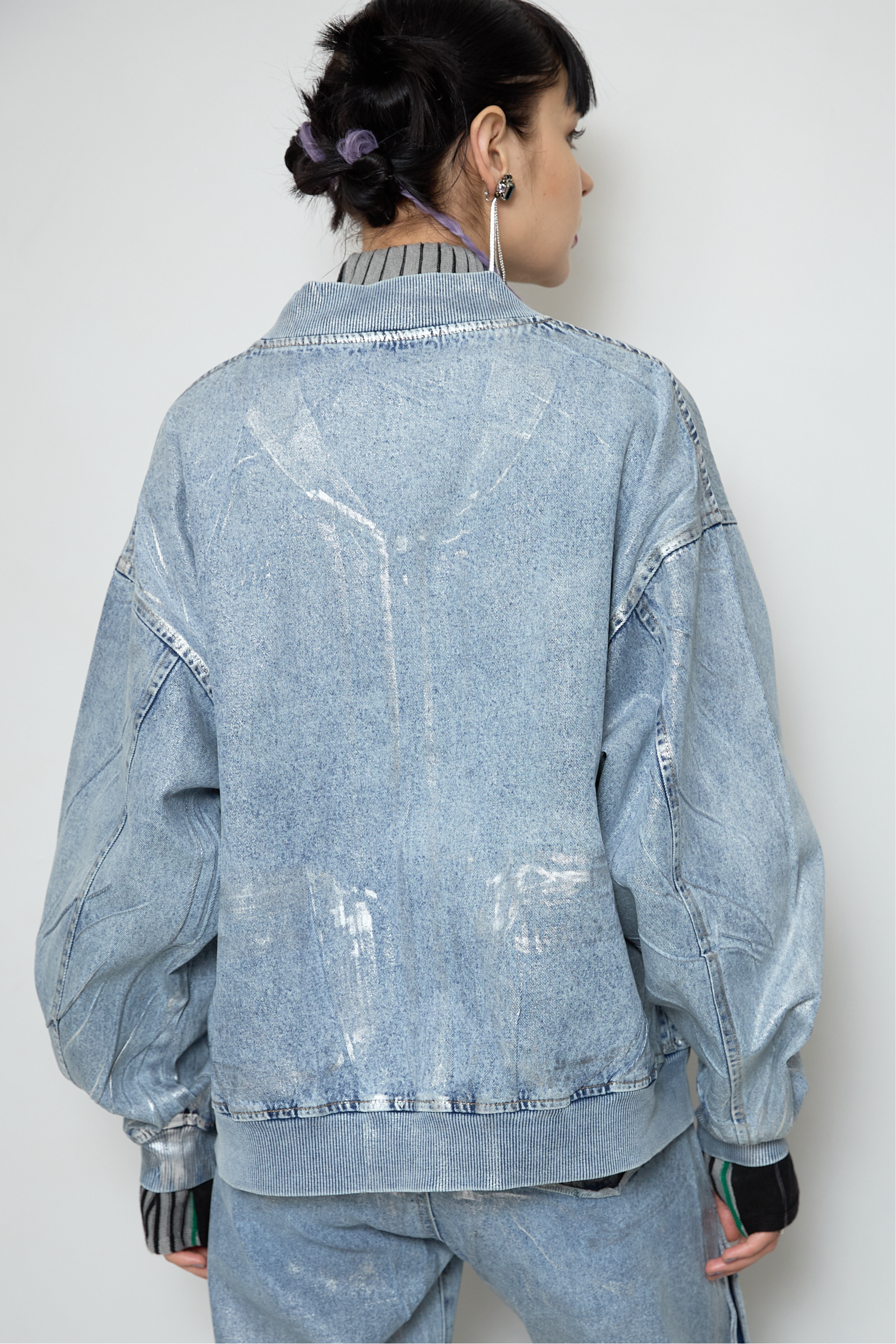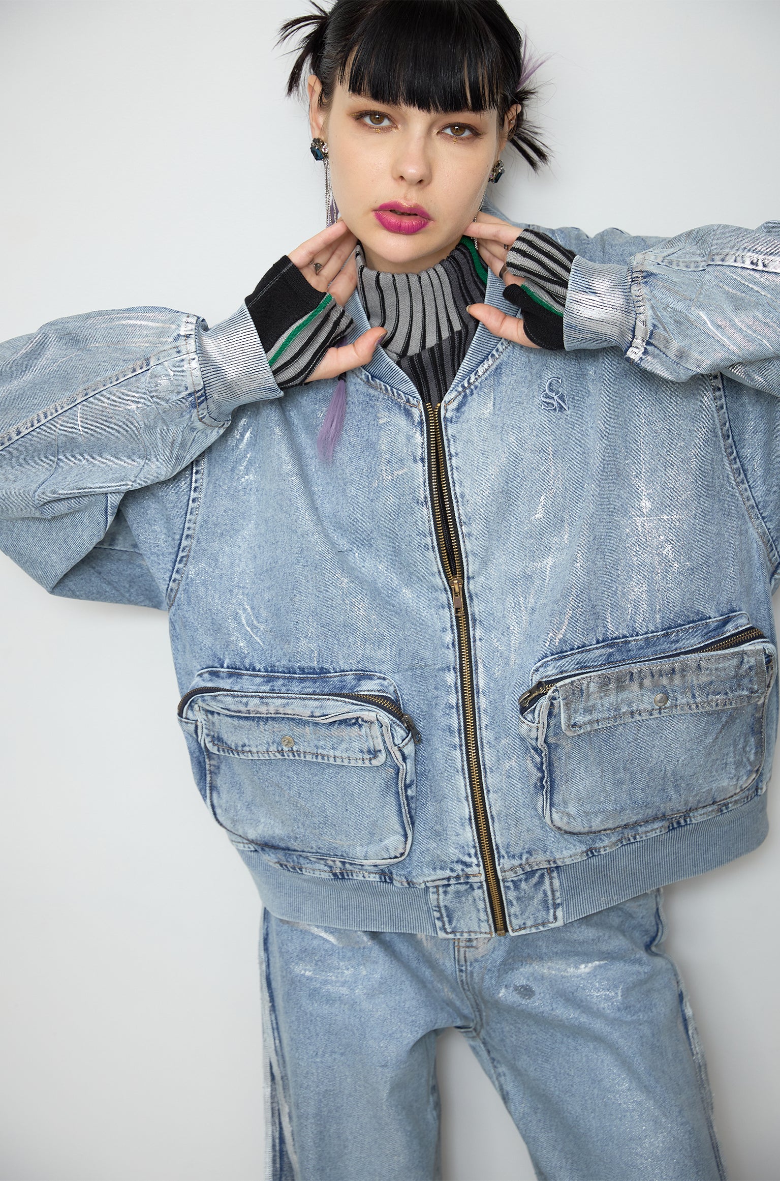 ゆったりとしたシルエットに、大胆に箔プリントを施したブルゾンです。