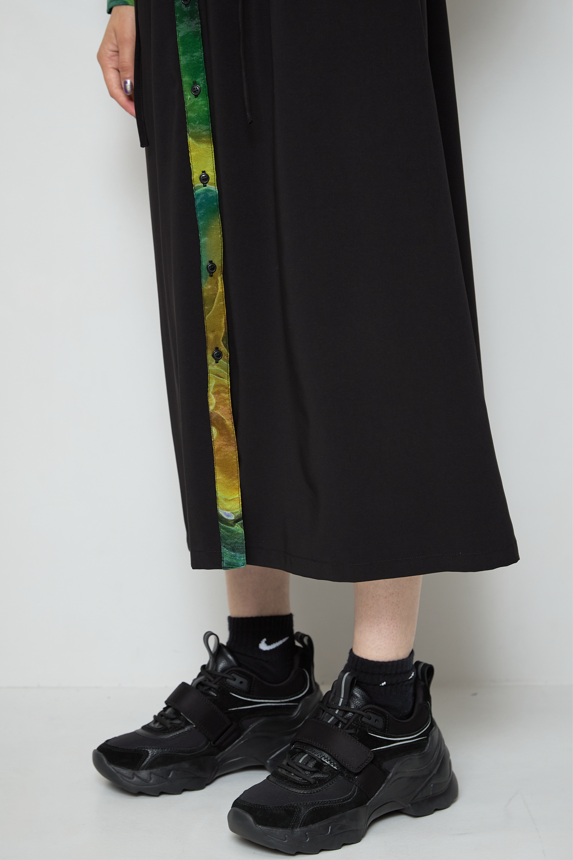 無地の素材は別売りのスカートと、同素材の布帛生地を使用しており