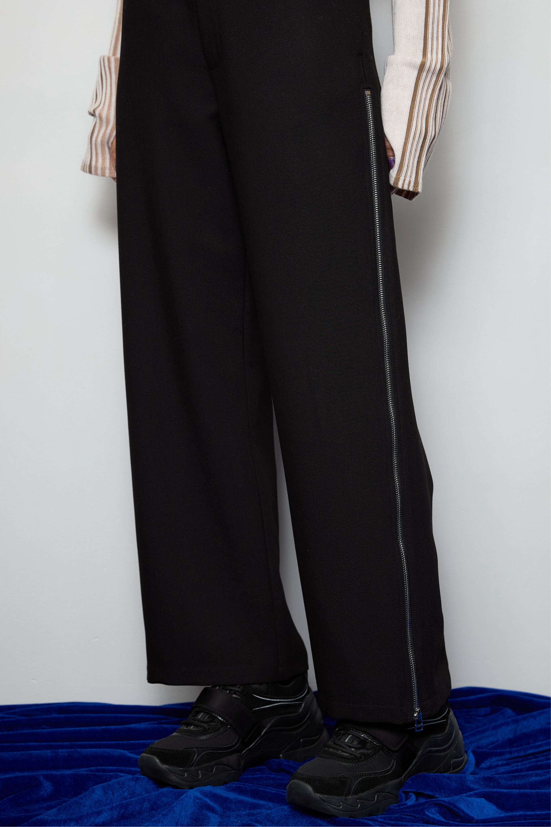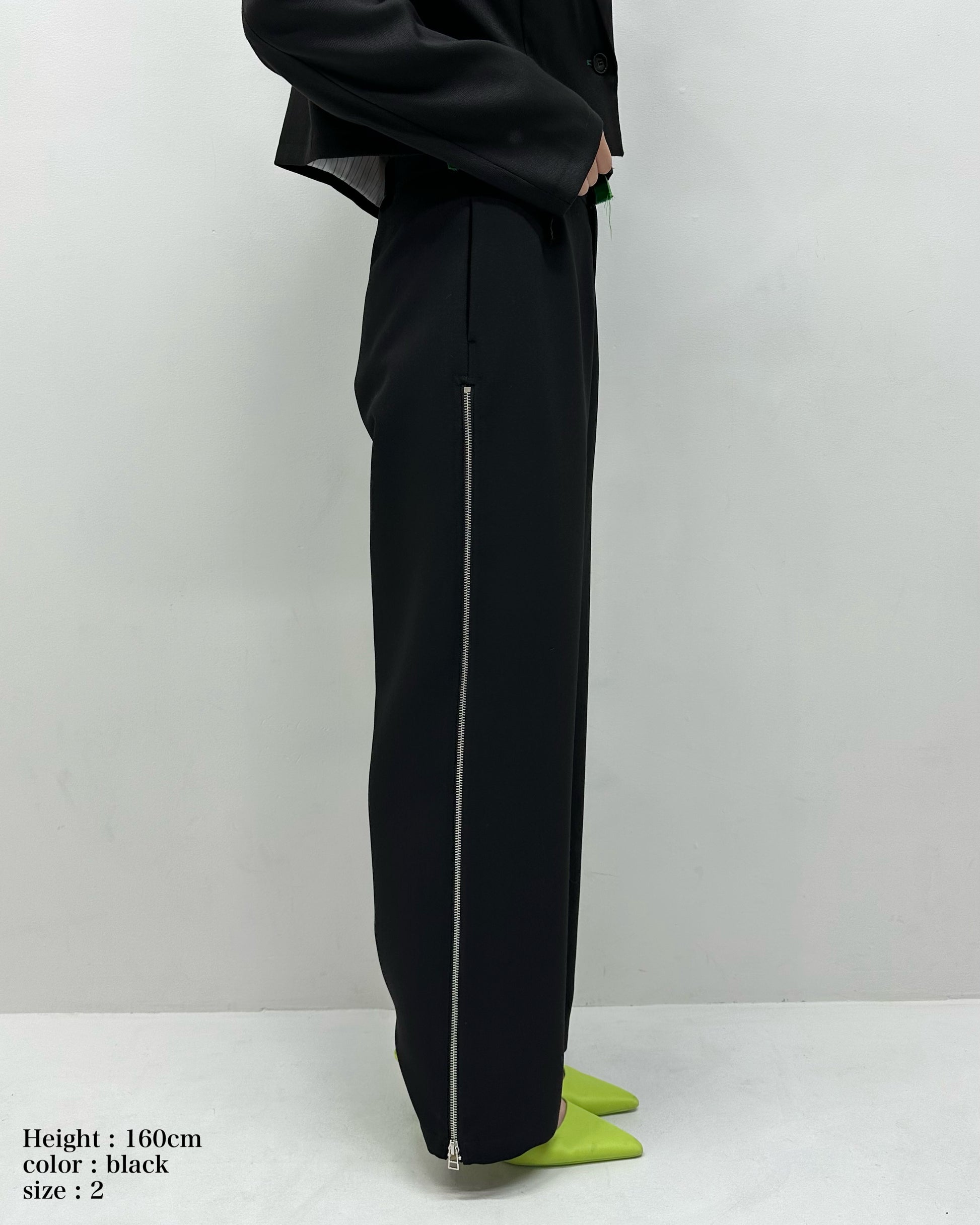 ストレートシルエットでサイドのファスナーをお好みの高さに調整する事で